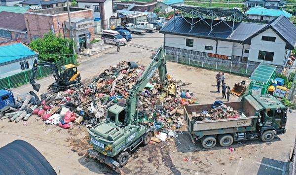수해복구 지원 인력으로 누적 인원 9,842명이 투입됐으며 장비로는 굴삭기, 덤프트럭 등 누적 818대가 투입됐다.