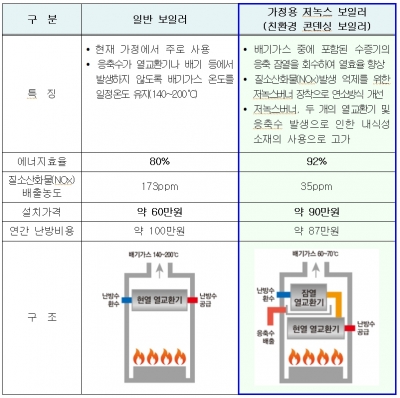 일반보일러와 비교해 봤을 때 대기오염물질인 질소산화물 배출량을 약 79%까지 저감시킬 수 있어 친환경적이다.