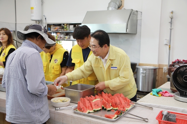 이날 마을공동체급식소에서는 동이면 석화리 마을회 임덕현 이장과 사)국제라이온스협회 365-B지구 리더스7기 회원들이 무더위에 지친 마을 어르신들을 위해 직접 요리한 삼계탕을 제공했으며 황규철 옥천군수가 참석해 급식 봉사자로 나서며 급식소를 이용한 마을 어르신 50여명과 급식관계자 등을 격려했다.