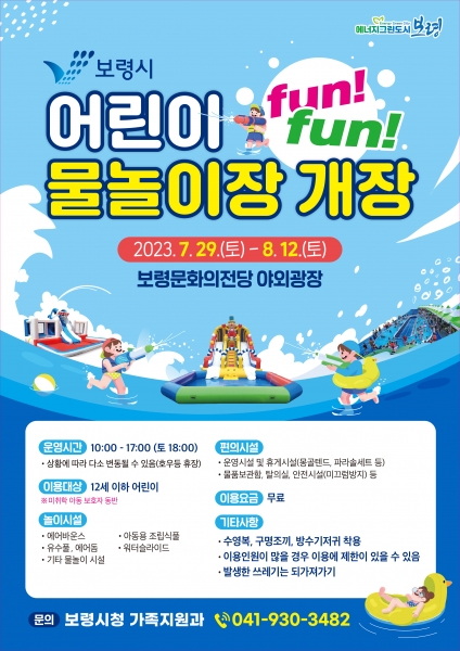[충청뉴스큐] 보령시는 오는 29일부터 8월 12일까지 15일간 보령문화의전당 광장에서 ‘보령시 어린이 funfun 물놀이장’을 운영한다.