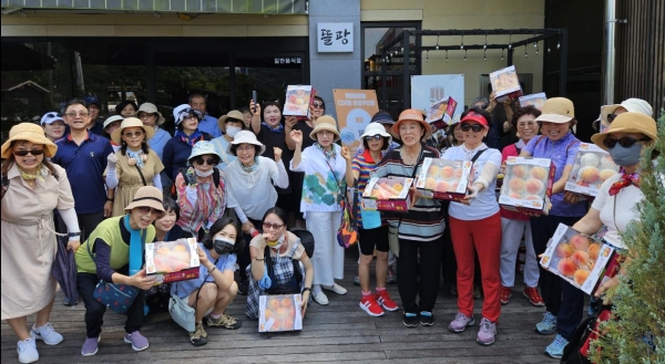지난 주말, 서울 및 수도권의 관광객 150여명이 옥천을 방문해 주요 관광지를 둘러보고 특히 옥천로컬푸드직매장을 방문해 축제장에 나가지 못한 신선한 포도와 복숭아를 구매해 과수농가에 큰 힘을 줬다.