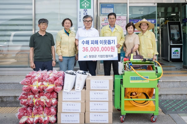 [충청뉴스큐] 청양군 기업인협의회가 지난 1일 수해복구를 위해 금품과 생필품, 식품 등을 청양군에 전달했다.