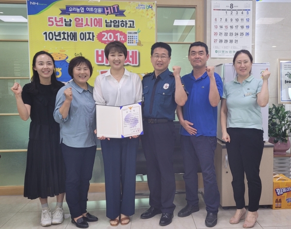 [충청뉴스큐] 최근 당진경찰서는 3일 보이스피싱을 예방한 농협 거산지점 직원A씨에게 경찰서장 감사장을 전달했다.