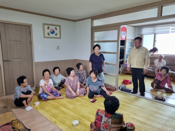 또한, 폭염 경보에 따른 건강관리 및 온열질환 예방 요령을 안내하고 어르신들이 안전하게 경로당 무더위 쉼터를 이용할 수 있도록 냉방 시설을 꼼꼼히 점검했다.