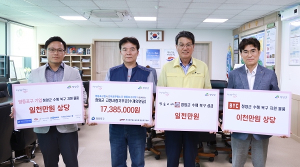 김돈곤 군수는 “의좋은 자매로서 도리를 다하는 영등포구민들의 애정과 성원에 깊은 감사를 드린다”며 “하루빨리 복구를 완료해 군민이 일상으로 돌아가도록 최선을 다하겠다”고 말했다.