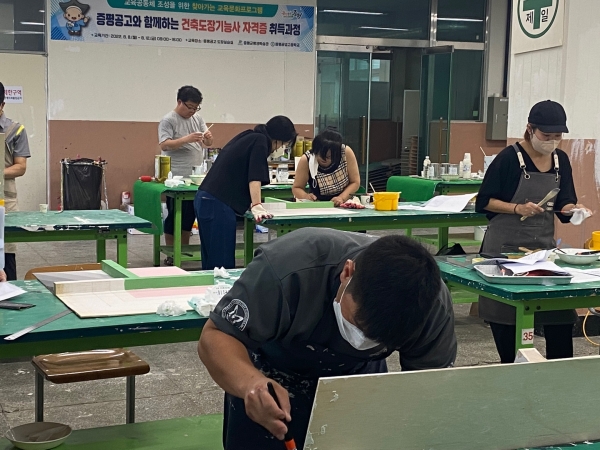또한 건축도장기능사 과정의 경우는 일반인 15명이 이론과 실습을 익혀 오는 16일 국가자격시험을 치룰 예정이다.