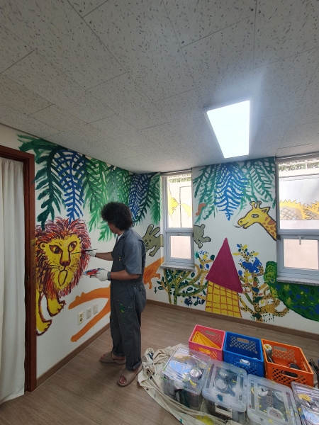 특히 100여 권의 삽화 활동을 한 그림책 ‘나오니까 좋다’의 김중석 작가가 벽화 그림을 그려 아이와 함께하는 부모의 공간이라는 의미를 더했다.