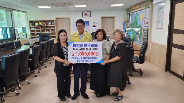 같은 날 한국농식품 여성CEO연합회 청양지회도 군수실을 방문해 성금 110만원을 맡겼다.