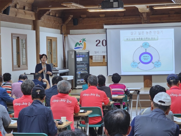 이번 교육은 한국지방자치경영연구소에서 주관했으며 이장 44명이 참여한 가운데 4번의 강연과 2번의 현장 탐방을 진행했다.