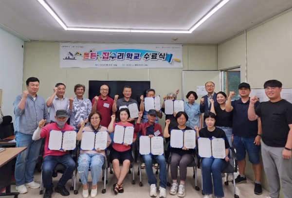 박도신 도시건축과장은 “집수리학교를 수료한 주민들이 주변의 어려운 이웃을 위한 봉사활동을 통해 지역공동체가 활성화되길 기대한다”며 “9월과 10월 진행될 집수리학교 심화 과정에도 많은 참여를 당부한다”고 말했다.