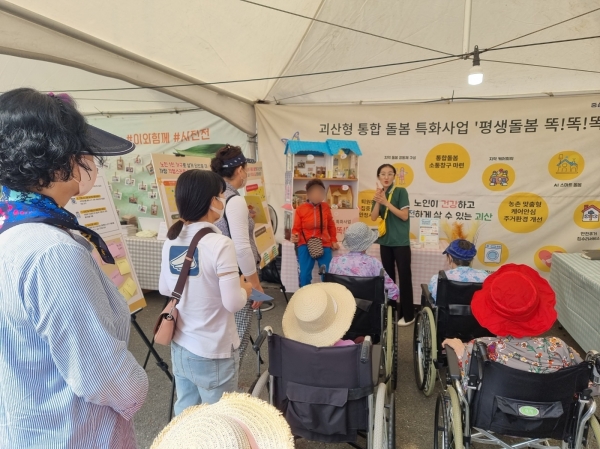 괴산군 노인복지관은 축제 기간 동안 노인 인식개선과 함께 ‘어르신돌봄 특화사업’을 축제장에 방문한 사람들에게 알리고자 홍보부스를 설치했다.
