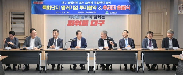 [충청뉴스큐] 대구광역시는 9월 5일 시청 산격청사에서 전기차 모터 소재부품장비 특화단지 민간투자를 위한 앵커기업 투자협약식과 함께 전기차 모터산업 관련 연구·대학·지원기관이 참여하는 특화단지 추진단 출범식을 개최했다.