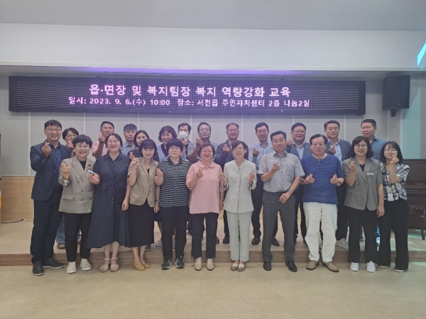 [충청뉴스큐] 서천군이 지난 6일 서천읍주민자치센터에서 13개 읍·면장, 맞춤형복지팀장 등 26명을 대상으로 복지 역량강화 교육을 실시했다.