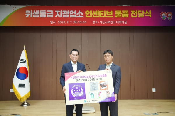 [충청뉴스큐] 충남 서산시는 지난 7일 서산시보건소에서 지난해 음식점 위생등급 지정업소 대표업소 78개소에 대해 인센티브 지원 물품 전달식을 개최했다고 밝혔다.