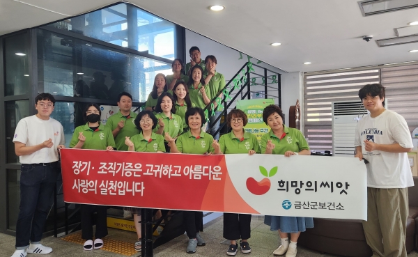 [충청뉴스큐] 금산군보건소는 2023 생명나눔 주간을 맞아 장기기증에 대한 긍정적인 인식 전환과 기증 활성화를 유도하기 위해 한국장기조직기증원과 함께 11일부터 17일까지 일주일간 생명나눔 그린라이트 캠페인을 개최한다.