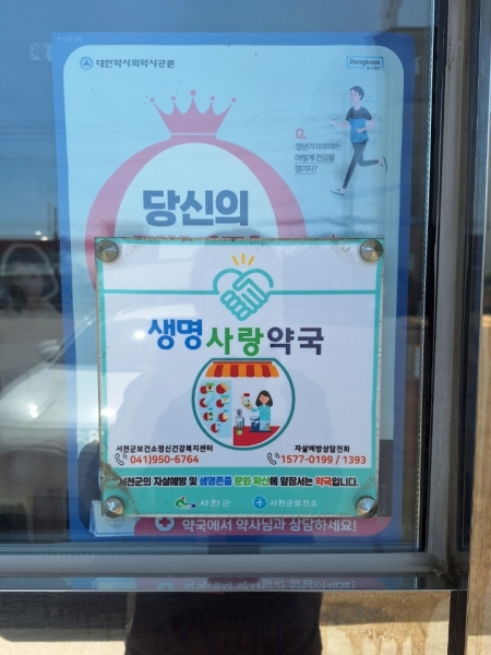군 관계자는 “접근성이 좋은 약국의 특성을 활용한 생명사랑 실천약국 사업을 통해 자살예방 인프라를 구축하고 사회적 안전망을 형성해 자살로부터 안전한 서천군을 만들기 위해 최선을 다하겠다”고 밝혔다.
