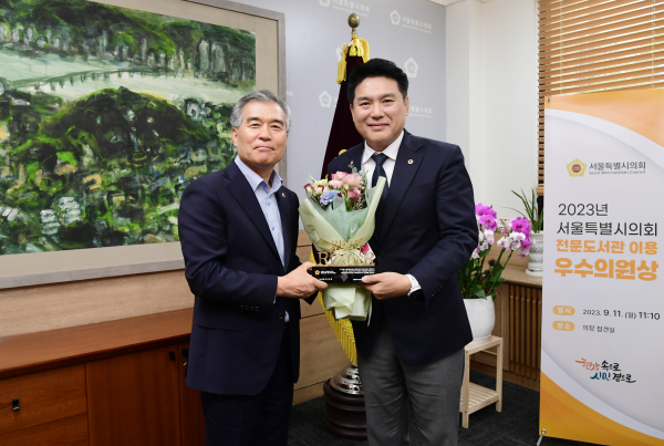 [충청뉴스큐] 서울시의회 도시안전건설위윈회 김길영 의원이의회전문도서관 이용 우수의원에 선정돼 11일 수상했다.