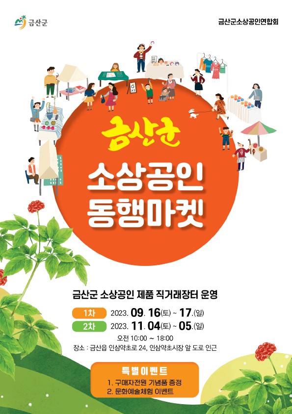 [충청뉴스큐] 금산군은 지역 소상공인을 지원하고 지경 경제를 활성화하기 위해 금산군소상공인연합회 주관으로 소상공인 동행마켓을 개최한다.