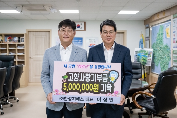 [충청뉴스큐] 청양군 화성면 수정리가 고향인 ㈜한성지에스 이상인 대표이사가 지난 13일 청양군을 방문해 고향사랑 기부금 500만원을 쾌척했다.