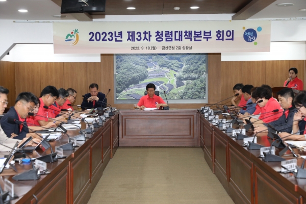 [충청뉴스큐] 금산군은 지난 18일 금산군청 상황실에서 부서장, 국장, 담당관, 과장 등 부서장 30여명이 참석한 가운데 박범인 군수 주재로 2023년 제3차 청렴대책회의를 개최했다.