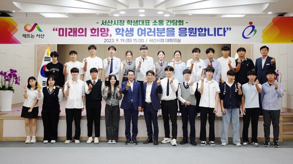 [충청뉴스큐] 충남 서산시는 지난 19일 미래 꿈나무인 청소년들과 교육 정책을 논의하고 학교생활에서 겪는 어려움에 대해 소통하고자 시청 대회의실에서 서산의 중고등학교 학생대표들과 소통 간담회를 개최했다고 밝혔다.