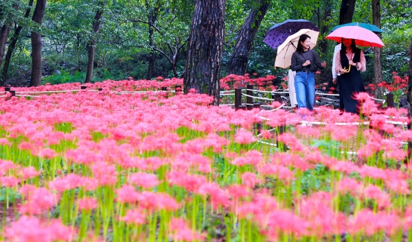 [충청뉴스큐] 보령시 성주산자연휴양림의 꽃무릇이 진홍색 꽃망울로 방문객들을 맞이하고 있다.