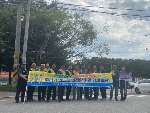 [충청뉴스큐] 당진경찰서 송악지구대는 2023. 9. 21. 11:00 송악읍 복운리 이주단지 및 38번 국도 부곡교차로에서 송악지구대 생활안전협의회원 30여명과 함께 안전한 송악 만들기 홍보활동을 실시했다.