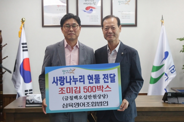 [충청뉴스큐] 서천군 소재 삼육영어조합법인이 지난 25일 추석 명절을 맞이해 관내 저소득 및 취약계층에 전달해달라며 750만원 상당의 조미김 500박스를 서천군에 기탁했다.