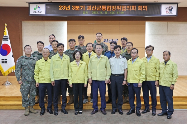 [충청뉴스큐] 충북 괴산군은 26일 민관군경 통합방위태세 확립과 유관기관과의 긴밀한 협조체계를 공고히 하기 위해 ‘23년 3/4분기 통합방위협의회’를 군청 대회의실에서 개최했다.