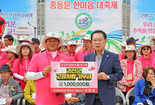이 자리에 함께한 송인헌 괴산군수는 “군정 발전을 위해 적극적으로 성원해 주신 모든 동문회원 여러분께 깊이 감사드린다”며 “고향을 사랑하는 마음으로 전달해주신 기부금은 주민복리증진사업 등 기금사업을 발굴해 내실있게 사용하겠다”고 전했다.