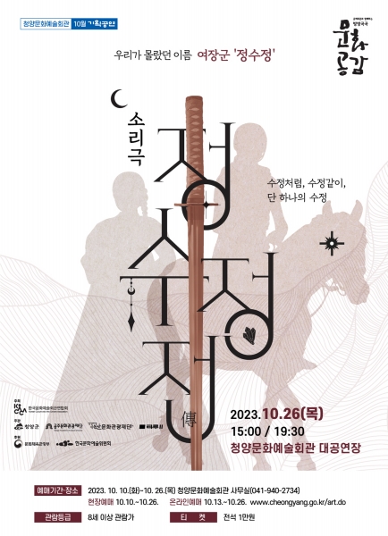 [충청뉴스큐] 청양군이 오는 10일부터 26일까지 창작 소리극 ‘정수정전’ 관람권을 예매한다고 5일 밝혔다.