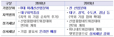 산업융합네트워킹Day는 2회 개최하며, 일정 조율 불가 등의 사유로 참여하지 못한 기업과 정기 미팅 이후 2차 미팅이 필요한 기업들을 위해 3회의 미니네트워킹데이를 계획해 지속적인 연계가 가능하게 할 계획이며, 기업 간 상시네트워킹을 유지하기 위해 SNS를 활용한 플랫폼을 구축해 산업융합네트워크 소개, 참여기업 검색, 사업공고 등의 서비스를 제공할 계획이다.