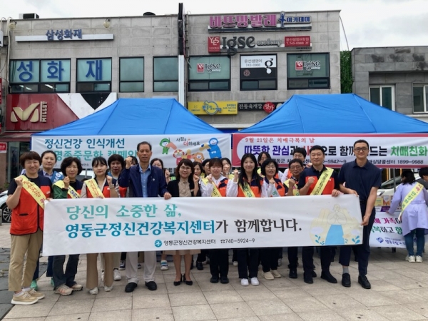 앞서 지난달 21일에는 영동읍 삼일공원에서 자살예방의 날 및 정신건강의 날을 홍보하기 위해 가두캠페인을 진행했다.