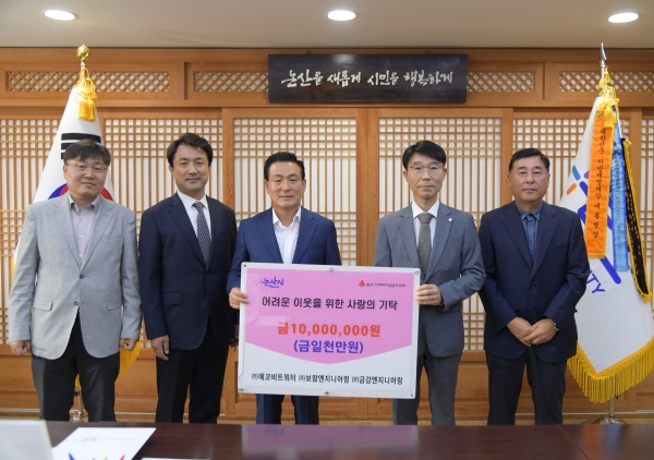 논산시는 지난 10일 오전 ㈜에코비트워터와 대전개인택시 논산향우회가 논산시로 이웃사랑 성금을 기탁했다고 밝혔다.