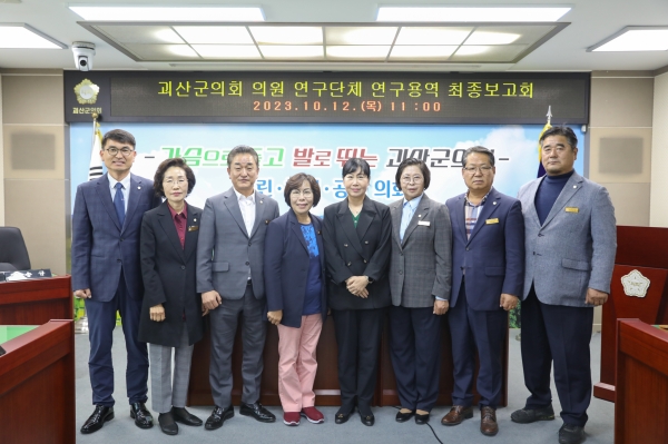 이날 보고회는 연구단체 구성의원인 안미선, 김낙영, 최경섭 의원을 포함한 8명의 의원과 괴산군 관계공무원, 중원대학교 산학협력단 연구원 등 20여명이 참석한 가운데 진행됐다.