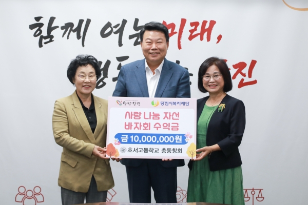 호서고등학교 총동창회는 앞서 지난달 1일 컨벤션설악에서 ‘작은 사랑 큰 기쁨 사랑 나눔 자선 바자회’를 열었다. 총동문회는 전국 각지에서 모인 호서고등학교 졸업생들과 당진 시민들이 자발적으로 모금한 수익금 전액을 지역 내 소외된 이웃들을 위해 전달하기로 했다.