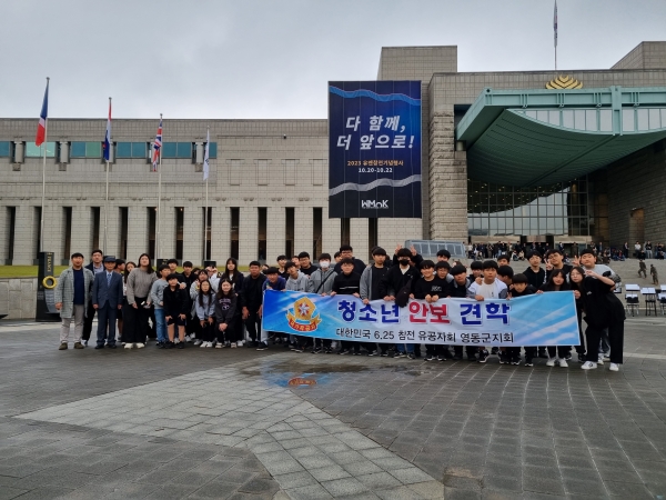 [충청뉴스큐] 대한민국 6.25 참전 유공자회 영동군지회는 지난 19일 영신중학교 학생 40명과 함께 용산 전쟁 기념관에서 청소년 안보 견학을 개최했다고 23일 밝혔다.