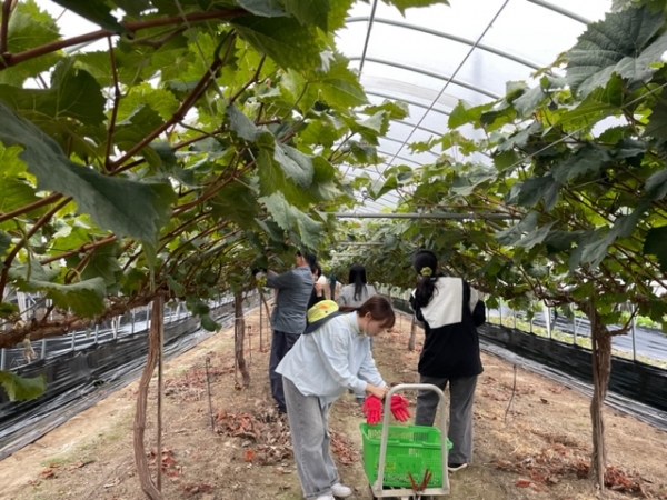 이날 직원들은 후암리 포도밭 순지르기와 인근 농지에 쌓여있는 폐비닐 수거작업을 하고 선동리 블루베리밭 줄띄우기, 잡초제거, 농촌환경 개선을 위한 쓰레기 줍기 등에 구슬땀을 흘렸다.