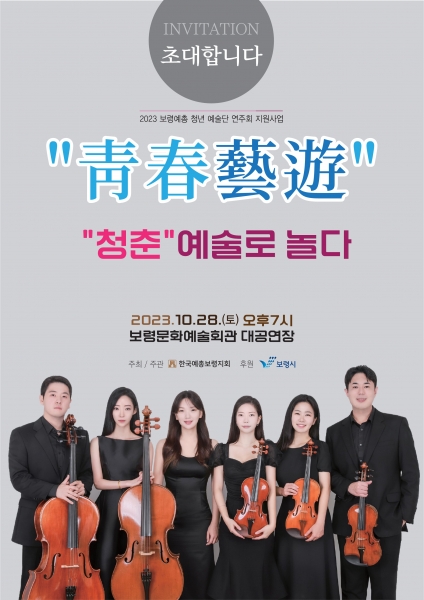 [충청뉴스큐] 보령시는 28일 오후 7시 보령문화예술회관 대공연장에서 ‘청춘예유’ 제1회 보령시 청년 예술가 연주회를 개최한다.