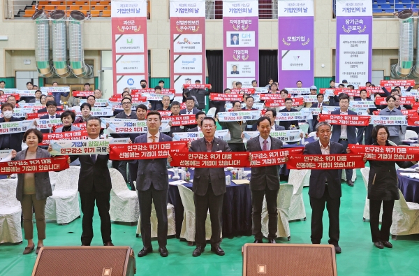 끝으로 인구감소 위기 극복을 위한 공동 퍼포먼스가 진행되며 ‘제3회 괴산군 기업인의 날’ 행사가 마무리됐다.