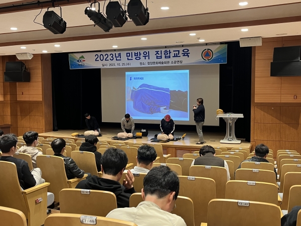 [충청뉴스큐] 청양군이 지난 25일 기본교육을 받지 못한 민방위 대원 30여명을 대상으로 청양문화예술회관에서 집합교육을 실시했다.