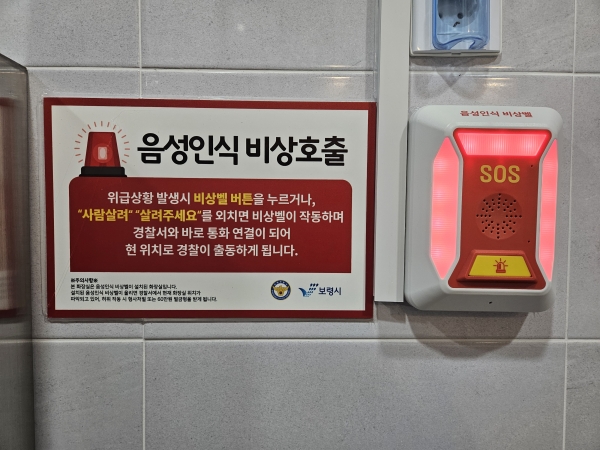[충청뉴스큐] 보령시가 시민들이 공중화장실을 안심하고 이용할 수 있도록 지역 내 공원 공중화장실에 음성인식 비상벨을 설치했다.