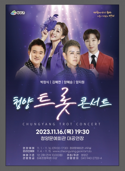 [충청뉴스큐] 청양군이 오는 16일 저녁 7시 30분 청양문예회관 대공연장에서 ‘2023 청양 트롯 콘서트’를 개최한다.