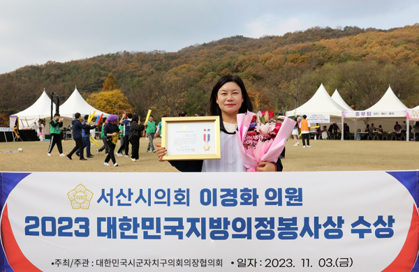 이경화 의원은 ‘서산시 아동학대 예방 및 피해 아동 보호와 학대피해아동쉼터 설치·운영에 관한 조례’를 대표 발의해 학대피해아동의 안정적인 보호와 전문치유 서비스 제공에 앞장서 왔고 ‘서산시 사회복지협의회 지원 조례’, ‘서산시 일제하 일본군위안부 피해자 기념사업 지원 조례’등 그간 주민과 아동 등 복리 증진을 위해 봉사하고 지방자치 발전과 지방의회의 위상 강화를 위해 기여한 점을 높이 평가받았다.