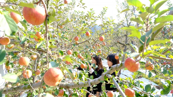 6일 군에 따르면 따뜻한 햇살과 맑은 공기 머금은 원조 후지 사과가 탐스럽게 익어 풍성한 수확의 기쁨을 누렸다.