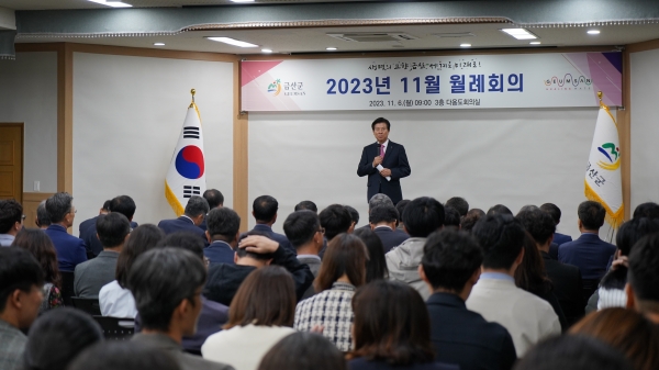 그러면서 박 군수는 2023년 충청남도체육대회·제41회 금산세계인삼축제 성공개최 및 공공데이터 대통령상 수상, 금산군 녹색도시 우수사례·금산군보건소 치매관리 우수기관 선정 등 성과에 관한 직원들의 노력에 감사를 표했다.