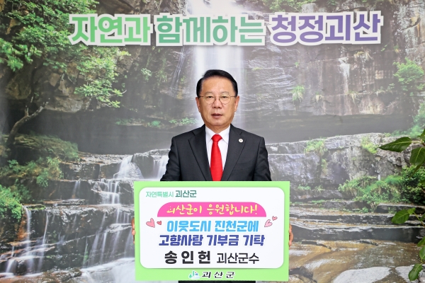 송 군수는 송기섭 진천군수가 괴산군을 포함한 중부4군 3개 지역에 고향사랑기부금을 전달한 데 대한 화답의 의미로 고향사랑기부에 동참했다.