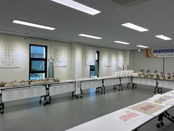 이번 전시회는 서천읍 주민자치센터 프로그램 가운데 자수교실 강좌 수강생들의 작품으로 구성돼 수강생들이 직접 제작한 50여 점의 작품을 만나볼 수 있다.