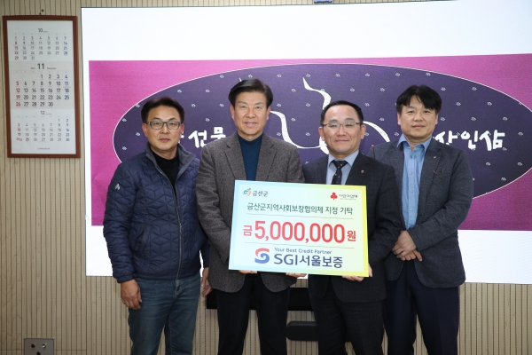 박범인 금산군수는 “금산군을 위해 따뜻한 나눔을 실천해 주신 SGI서울보증보험에 감사드린다”며 “지역의 소외된 군민들에게 후원금이 의미 있게 쓰일 수 있게 하겠다”고 전했다.