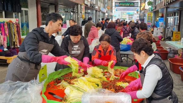 [충청뉴스큐] 청천면 푸른내 상인회가 15일 청천 푸른내 시장에서 김치만들기 체험행사를 추진했다.